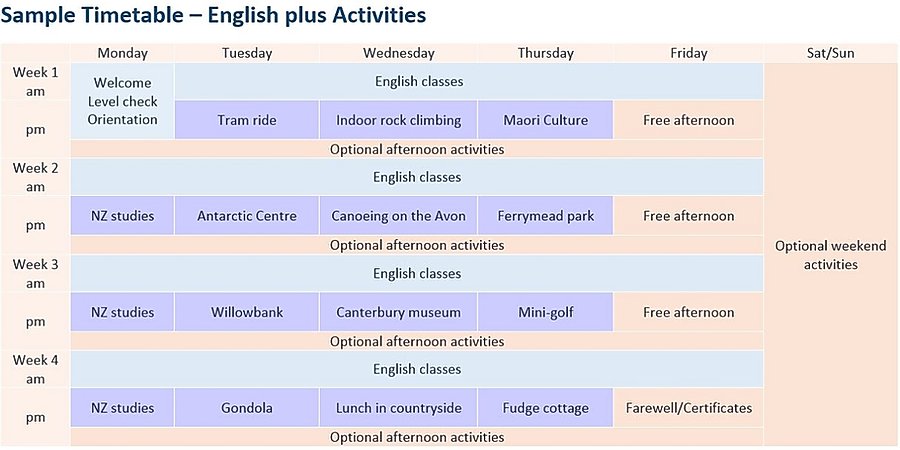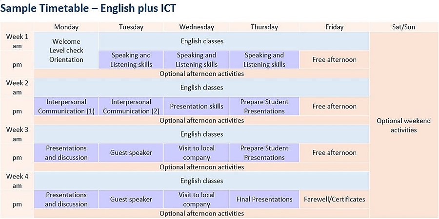 - English + ICT (Information & Communication Technologies) (sample timetable)