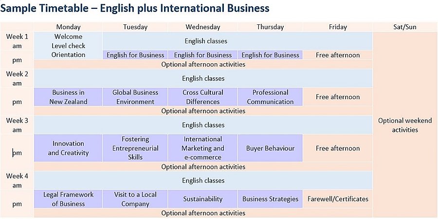 - English + International Business (sample timetable)